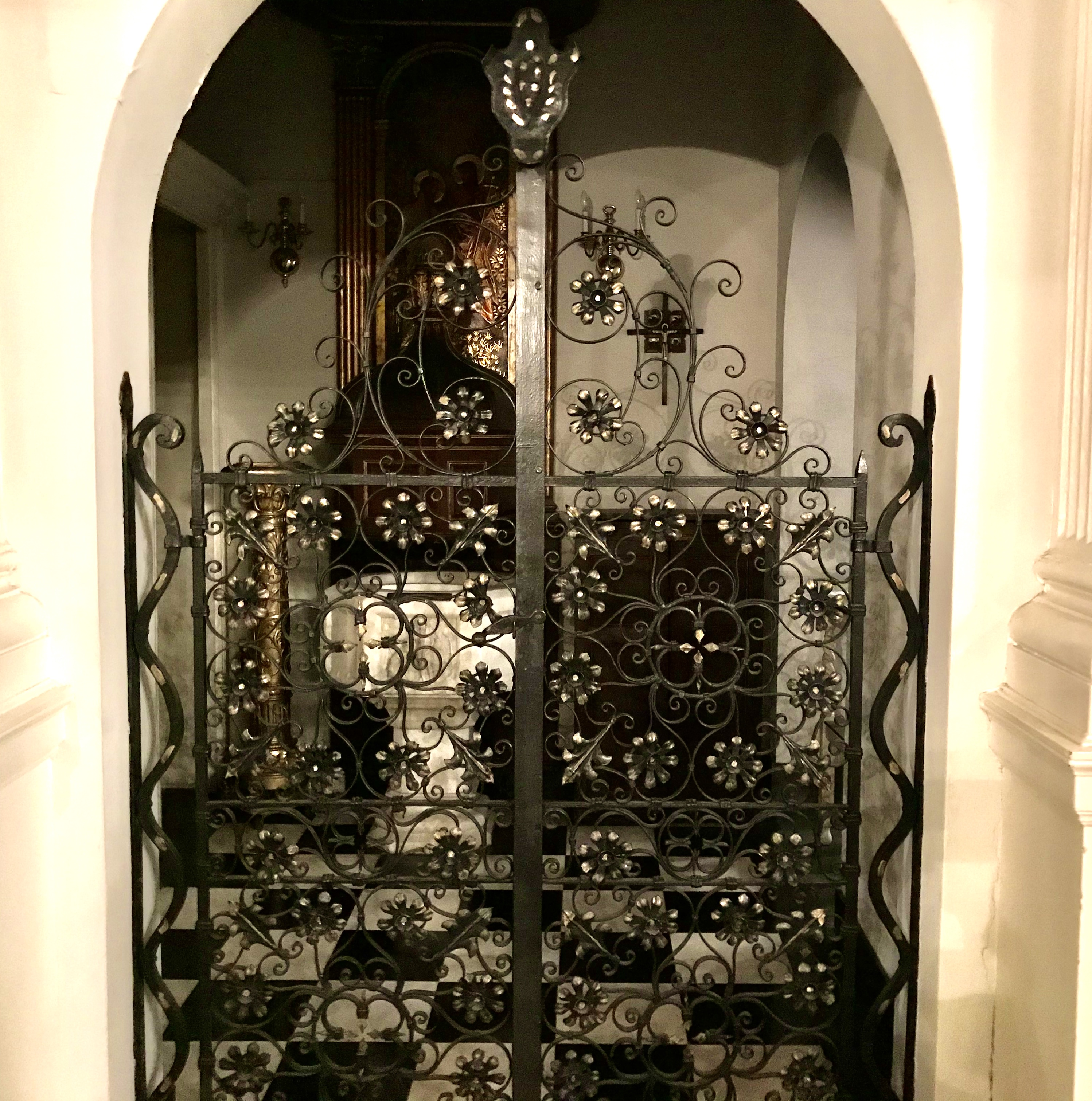 Corpus Christi Church and its baptismal font. Thomas Merton was baptized at Corpus Christi.