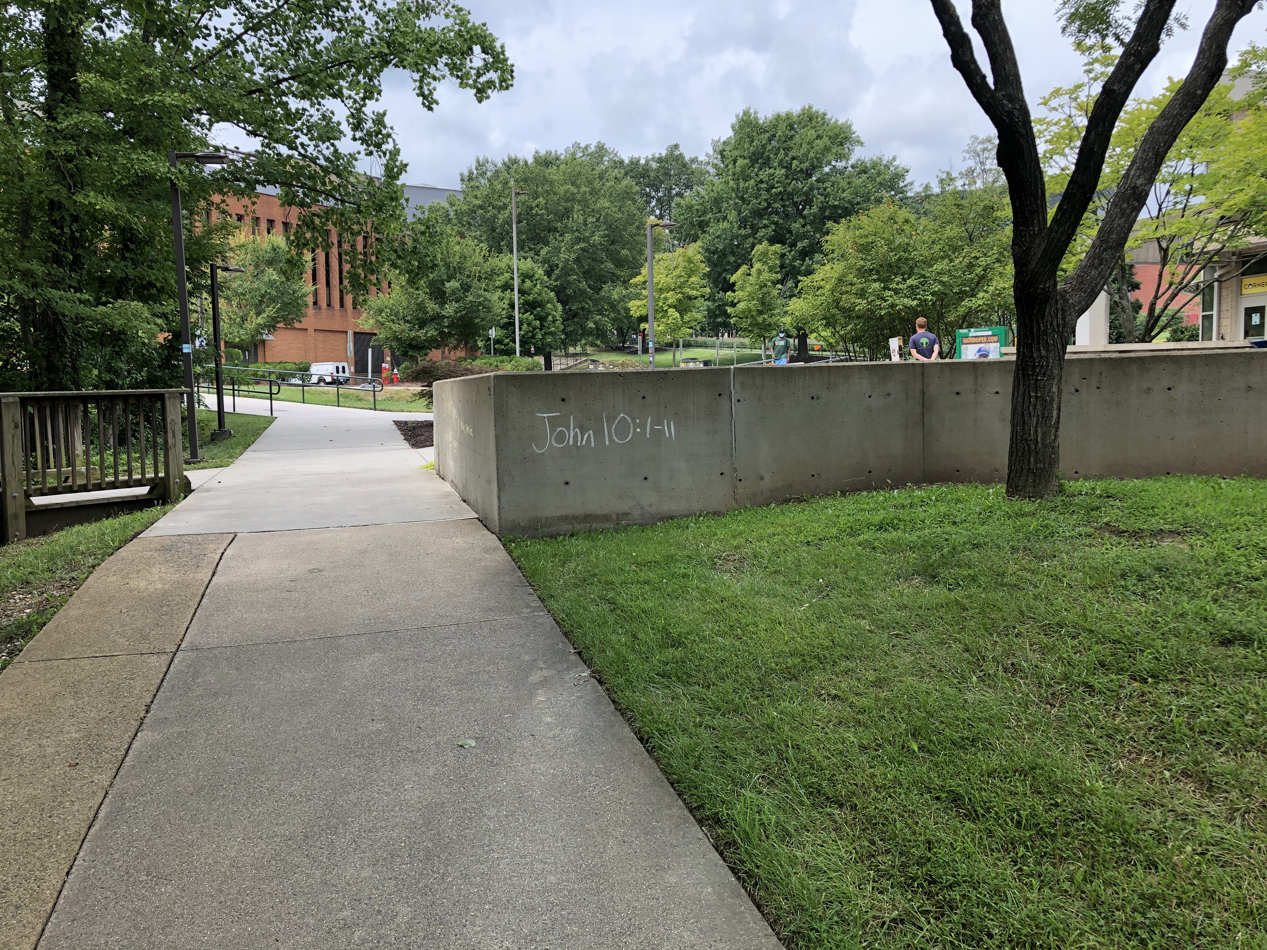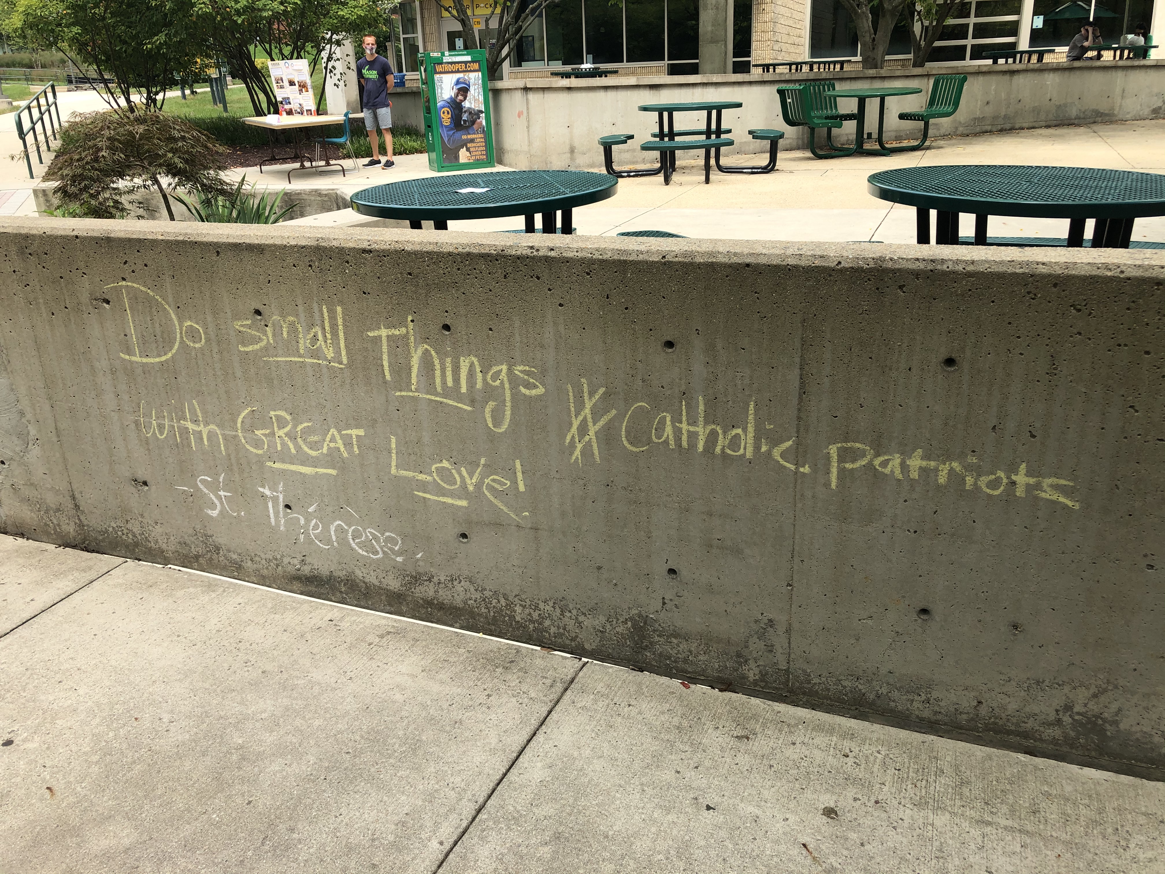 On the last weekday before classes start for the fall 2020 semester, there are signs of active campus ministries around campus.