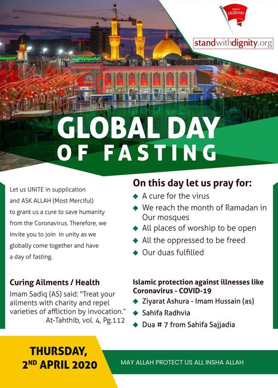 Among the wider Canadian Shi’a (Twelver, Ismaili, and Bohra) community, Facebook pages centered around religious television networks provided an opportunity for users to post visual material with the active encouragement that they be shared widely. As I observed among digital proselytization networks in Pakistan, the sharing of visual material on one’s feed or among one’s WhatsApp contacts carried with it the possibility of gathering blessings and increasing the potential efficacy of one’s prayers. A small sample of these COVID-19-specific materials shared among Canadian Shi’a are attached with this entry. A number of these written in Urdu and shared widely between Canadian worshippers and family and friends in Pakistan are briefly summarised and translated below.