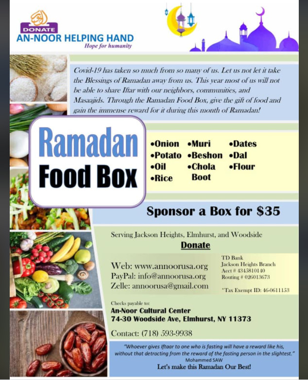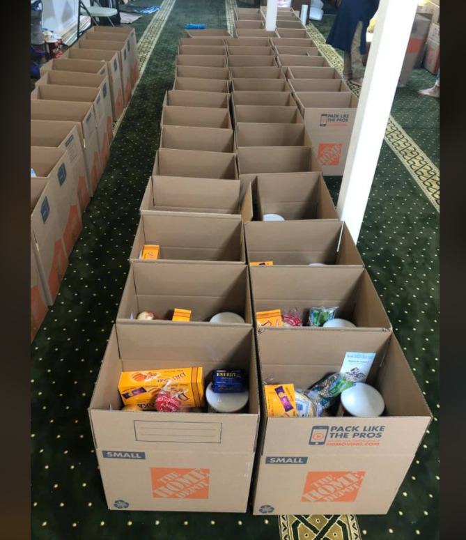 Food boxes that were provided by local mosques and funded through nyc government. These specifically are labeled Halal but there were many options.