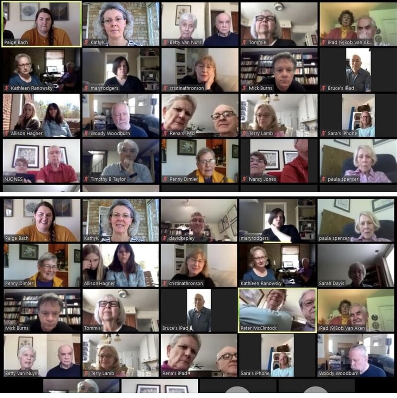 A screen shot of a zoom call with the congregation of Providence Presbyterian Church.
