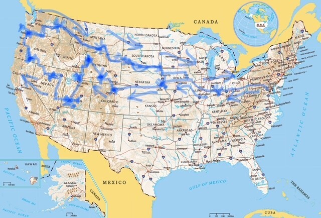 This is a map of Pastor Roshke's trip during the pandemic in which he performed his sermons online in various parts of the country.