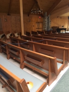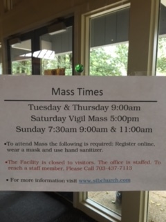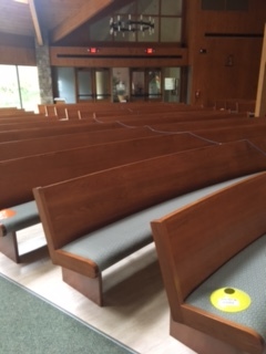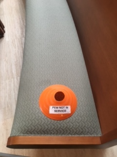Images of how St. Thomas á Becket Church is responding to safety restrictions for the reopening of their church building.