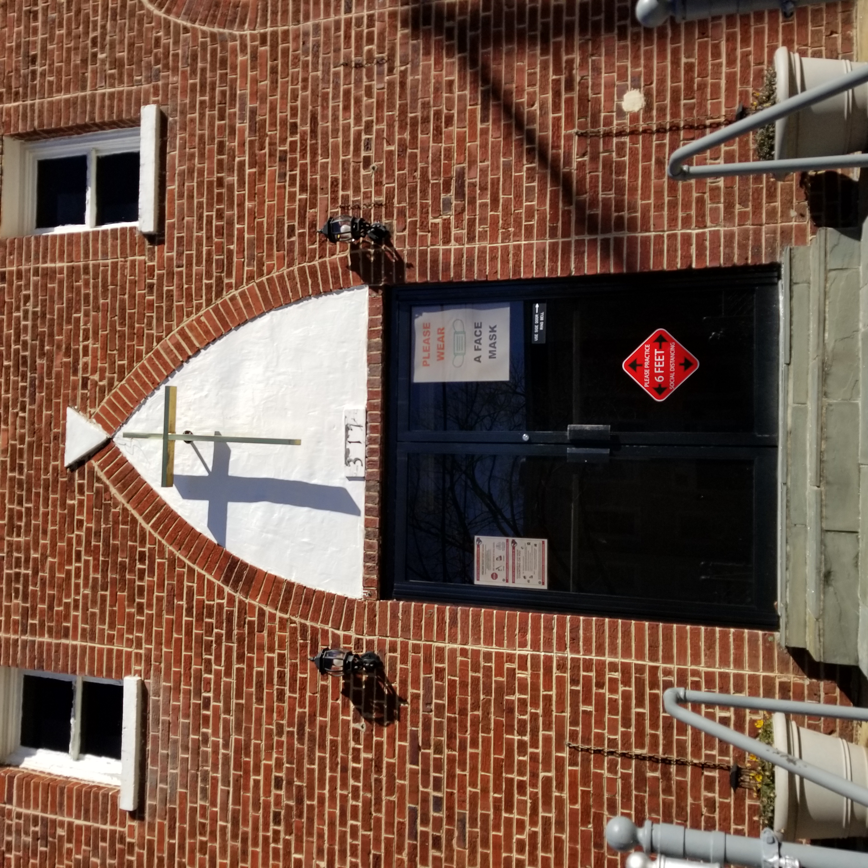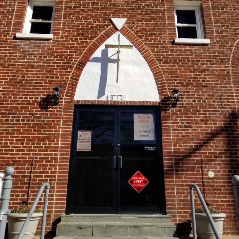 Church has signs that show its COVID-19 response, including masks and social distancing