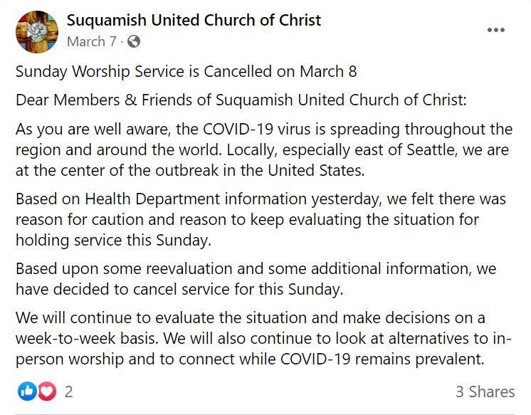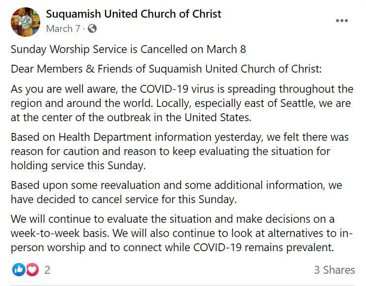 Suquamish United Christ of Christ March Facebook Posts/Updates