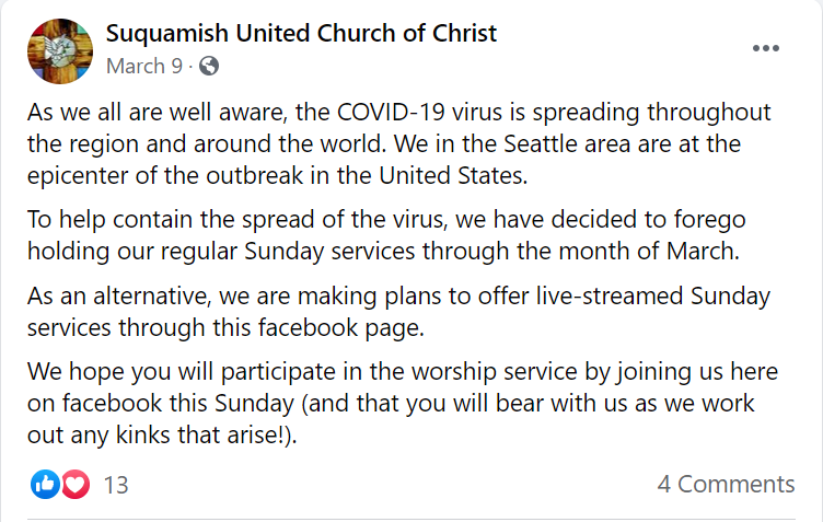 Posts made during the month of March to the Facebook page of Suquamish United Church of Christ