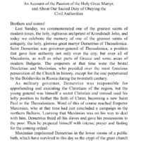 A Homily for the Feast of the Holy Great Martyr Demetrius |