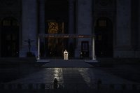 I am Roman Catholic. Lent, the time of penance leading up to Easter, is the most solemn time of the year. For me, it is also a time of extra reflection on the mysteries of Christ's life and death, while continuing to live in the hope of the resurrection. This year, Lent was broken in half by the sudden imposition of "stay-home" orders that prevented us from going to work, going out to eat, going to mass, or enjoying most recreational activities, such as movies, plays, or concerts. I missed all of these communal activities. Soon it became clear, though, that we all were in this together. Shocking and unbelievable though it was, the whole world had shut down. On March 27, 2020, Pope Francis held a special service at the Vatican to ask God to end the plague and to give a blessing so we had the strength to endure what was coming. This haunting image of him alone in St. Peter's Square reflects to me the melancholy feeling of the time. It was as if the whole world was experiencing Lent together. -