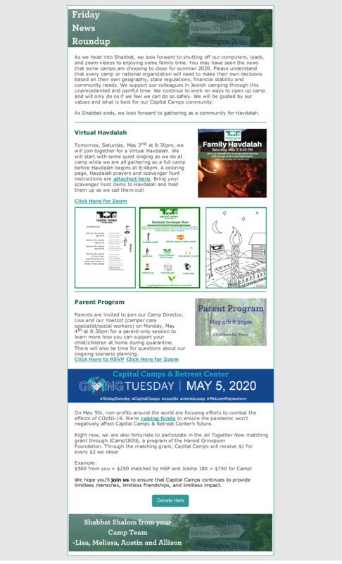 Part of Capital Camps' Friday News Roundup: Virtual Havdalah