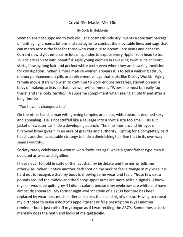 Essay, "COVID Made Me Old" by Doris H. Goldstein