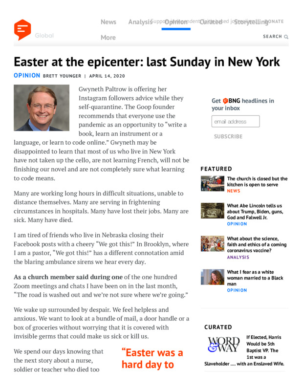 Part of Reverend Brett Younger's Articles on COVID-19 and Religion