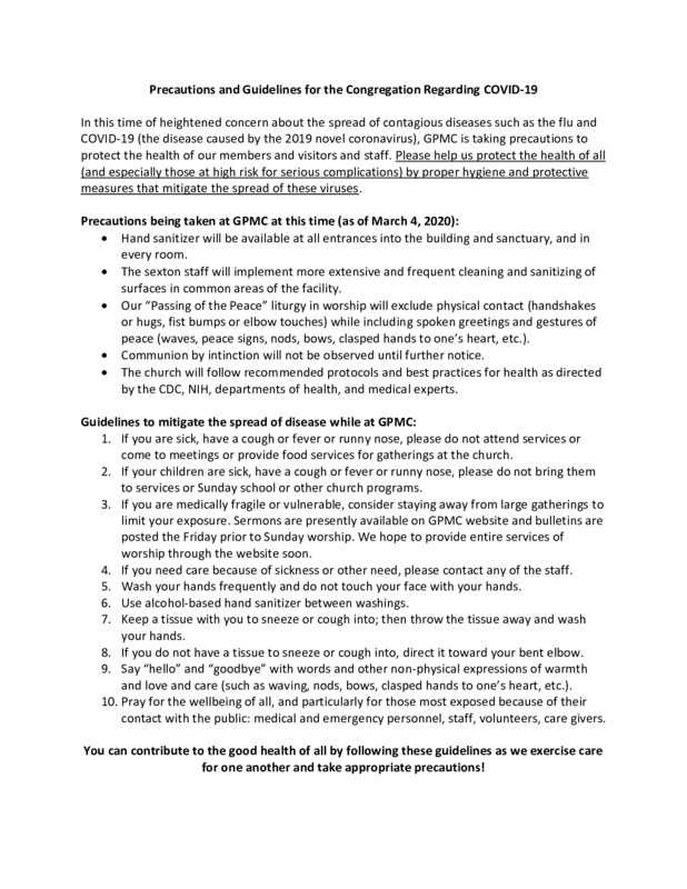 Part of A Religious Response to Covid-19 from a Presbyterian Community of Faith Near Detroit