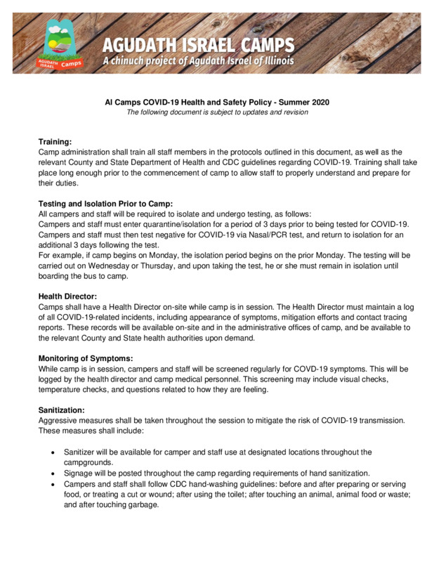 Part of Jewish Summer Camps | Health & Safety Protocols in 2020