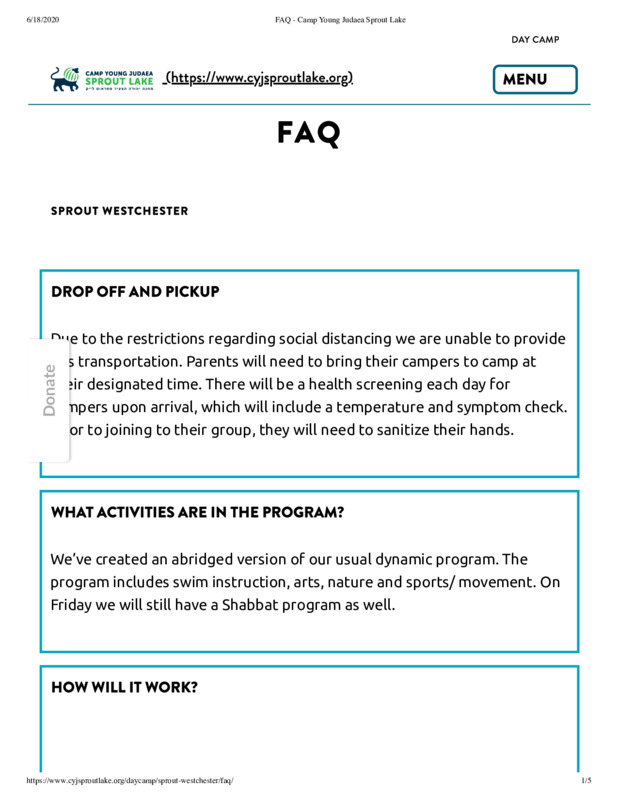 Camp Young Judaea Sprout Lake | Summer 2020 Updates