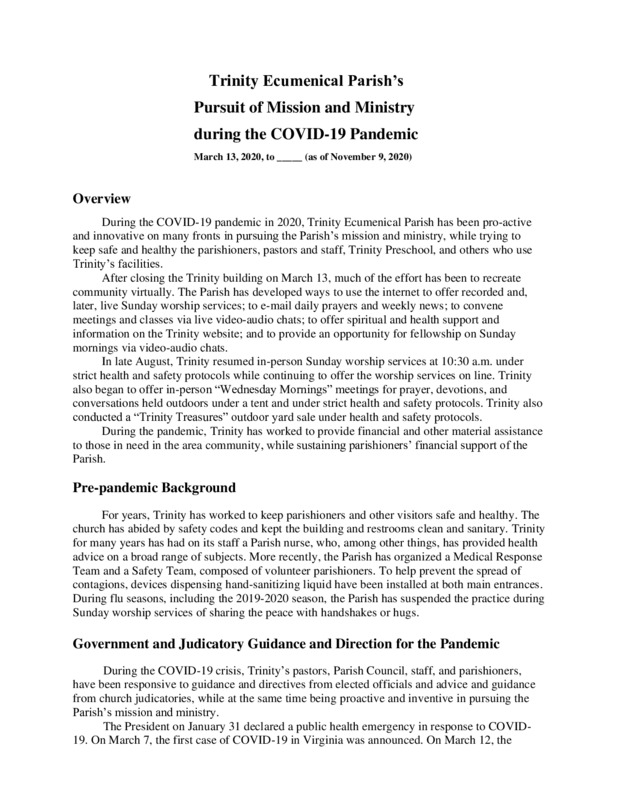 Part of Trinity Ecumenical Parish - Pandemic - a history