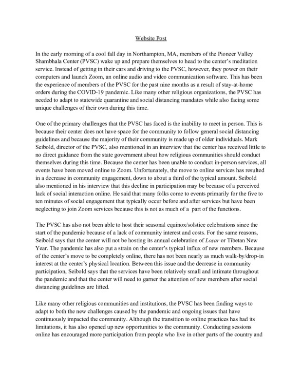 Worship During the Pandemic at the Pioneer Valley Shambhala Center