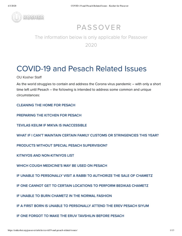 Orthodox Union Kosher Food Lifeline