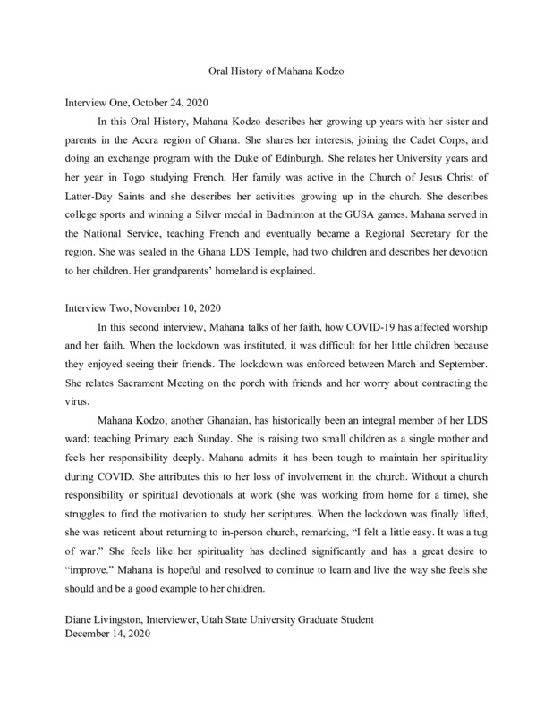 Oral History of Mahana Kudzo for Submission
