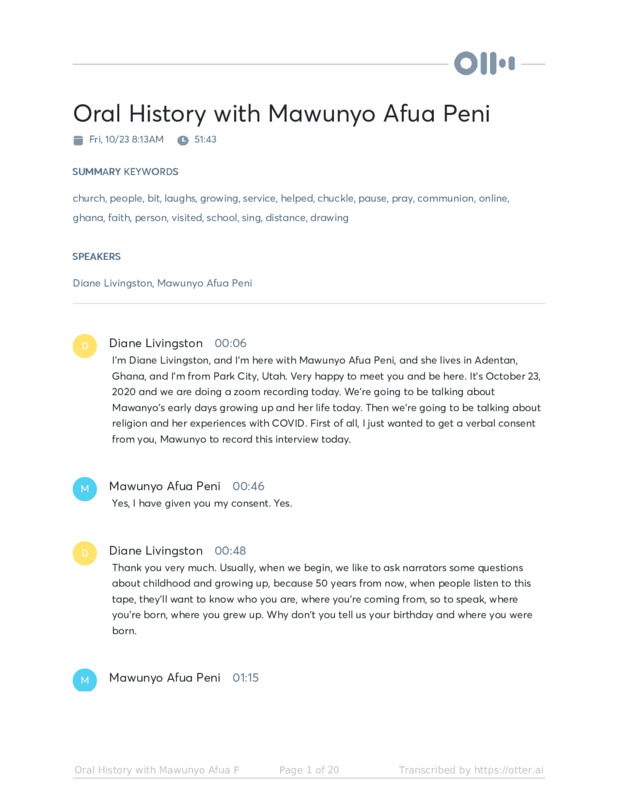Oral History with Mawunyo Afua Peni