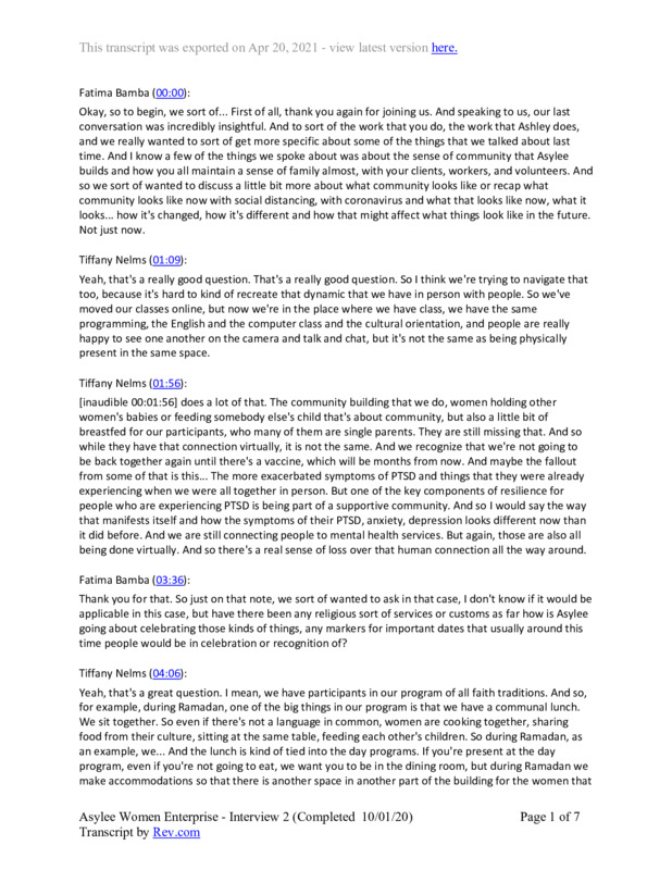 Asylee Women Enterprise, Interview #2