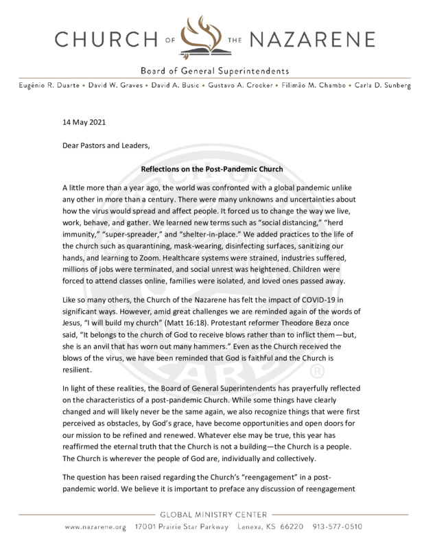 Reflections on a Post-Pandemic Church from the Church of the Nazarene