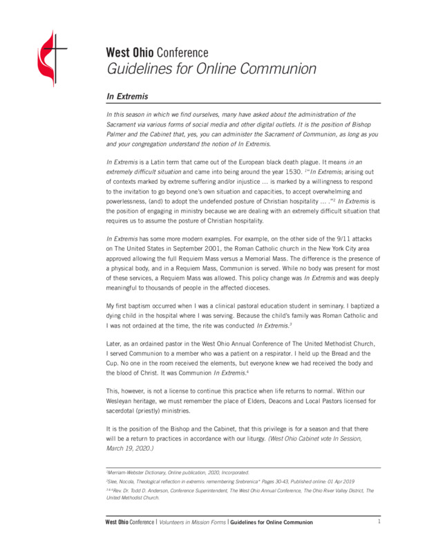 United Methodist Church West Ohio Conference Guidelines for Online Communion