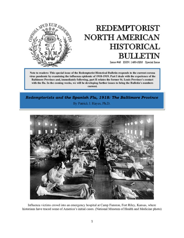 Part of Plague year: how the Redemptorists coped with last century's pandemic
