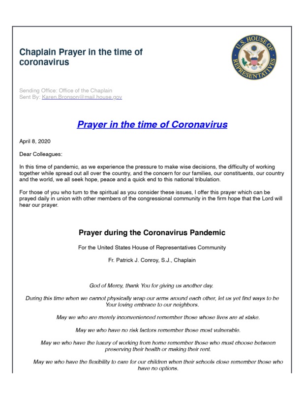 Prayer in the time of Coronavirus by the Chaplain of the House of Representatives