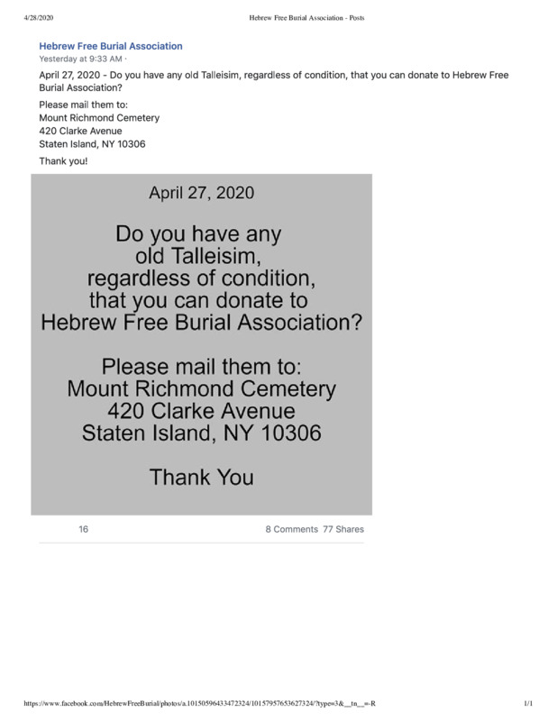 Part of Donation Request from the Hebrew Free Burial Association