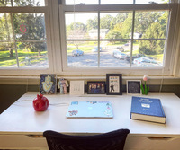 To prepare for virtual Rosh Hashanah morning services, I decorated my desk with Jewish art, objects, and a picture of my family in order to foster the feeling of being in a sacred space.