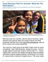 This collection provides examples of how Jewish summer camps adapted and adjusted their 2020 programs. Some camps provided alternate options to their families amidst the COVID-19 pandemic, while others cancelled their programs all together.