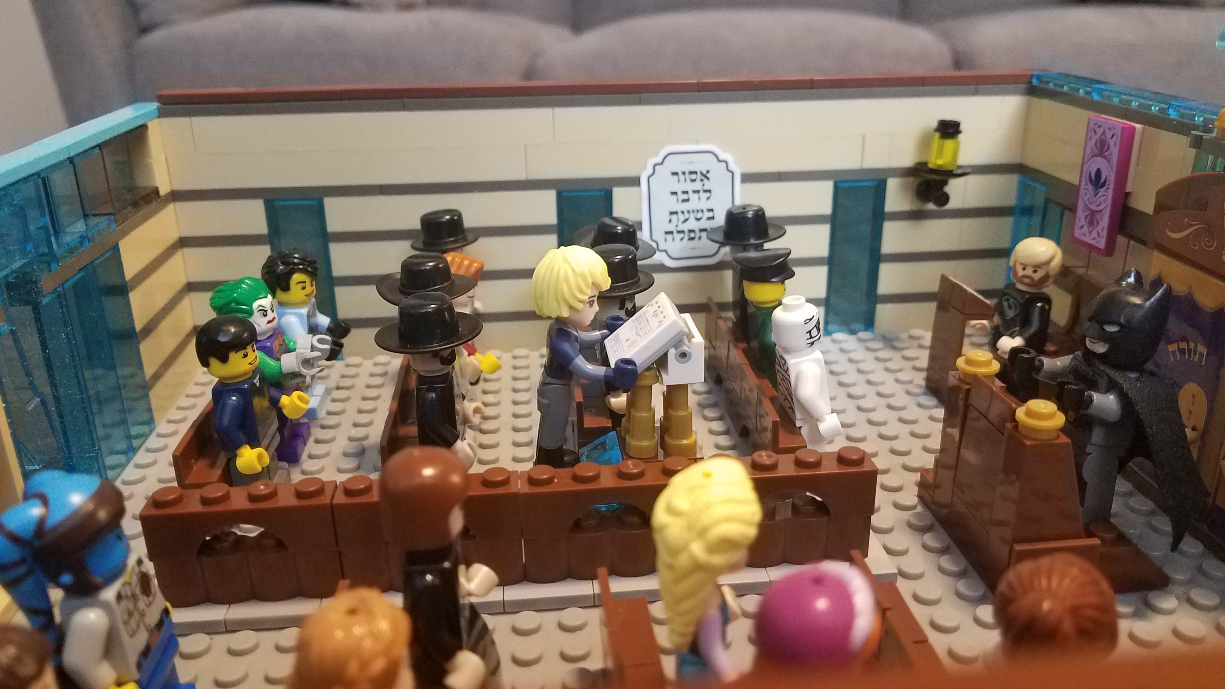 On Passover 2020, synagogues were closed in Skokie, IL. To mollify the situation, Meital (age 7) and Jack (age 5) Eleff constructed their synagogue (with some license) out of Lego blocks.