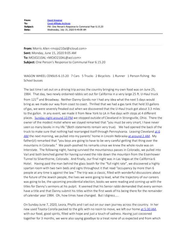 One Person's Response to Communal Fear 6.15.20