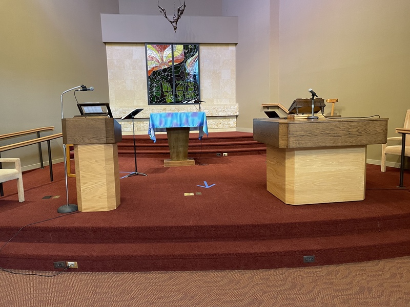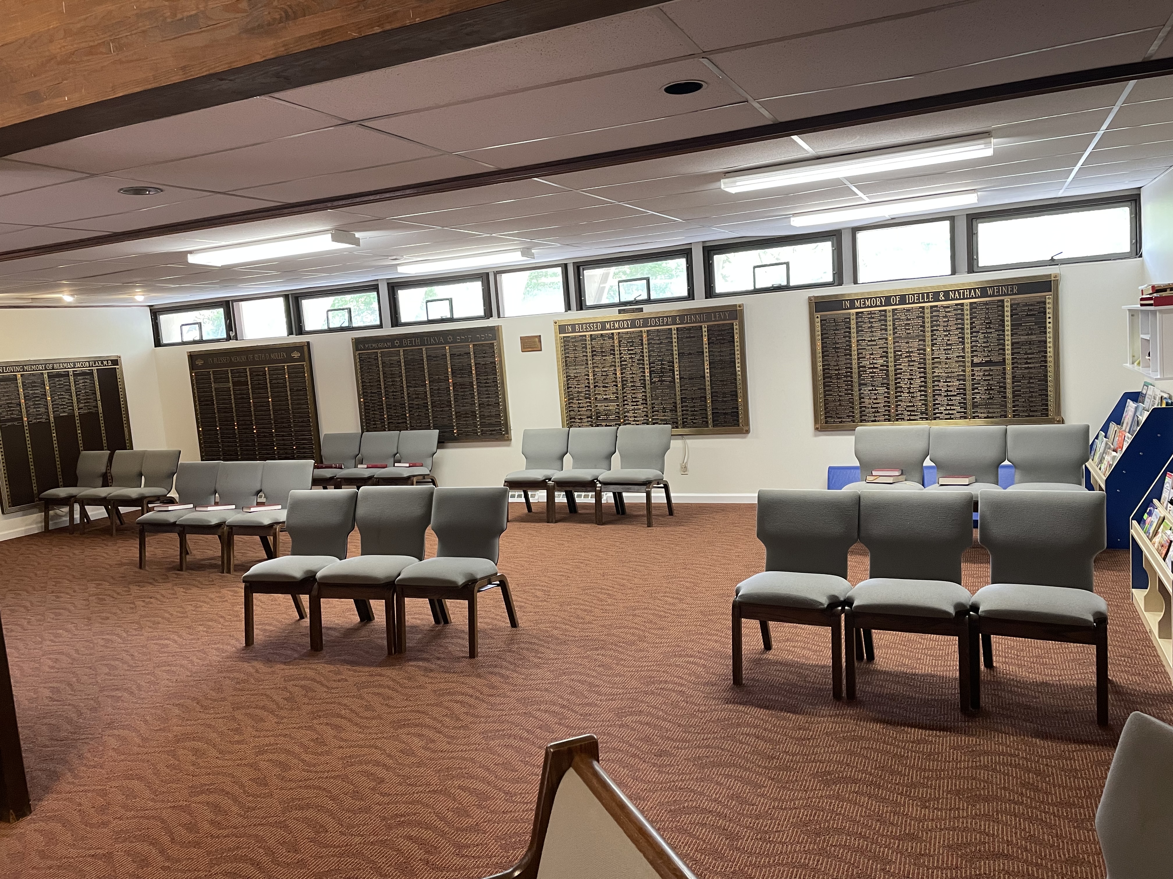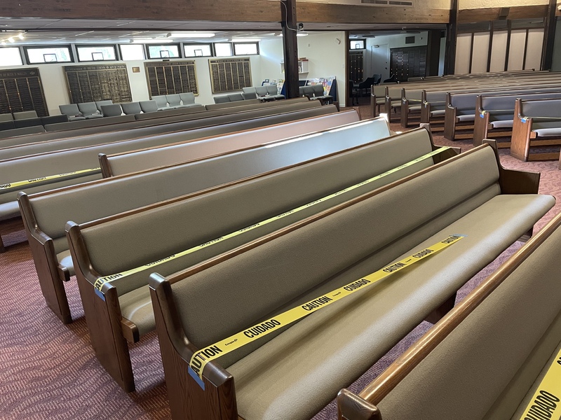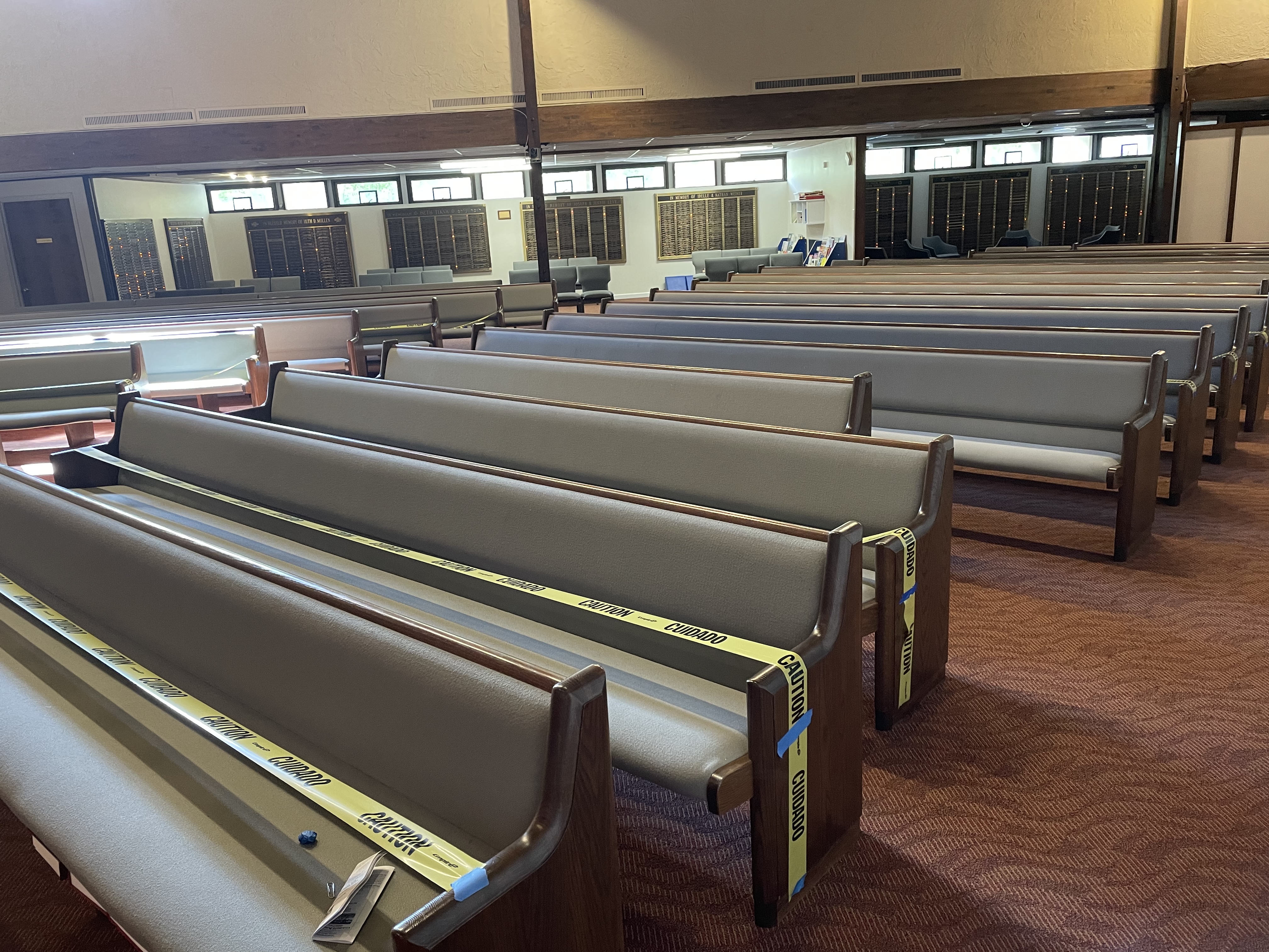 These are pictures of the sanctuary at Tikvat Israel in Rockville, MD, with seats marked off to ensure social distancing as we prepare to return.