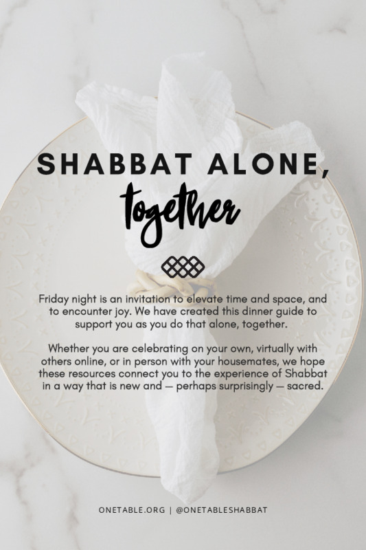 Friday night is an invitation to elevate time and space, and to encounter joy. We have created this dinner guide to support you as you do that alone, together. Whether you are celebrating on your own, virtually with others online, or in person with your housemates, we hope these resources connect you to the experience of Shabbat in a way that is new and — perhaps surprisingly — sacred.