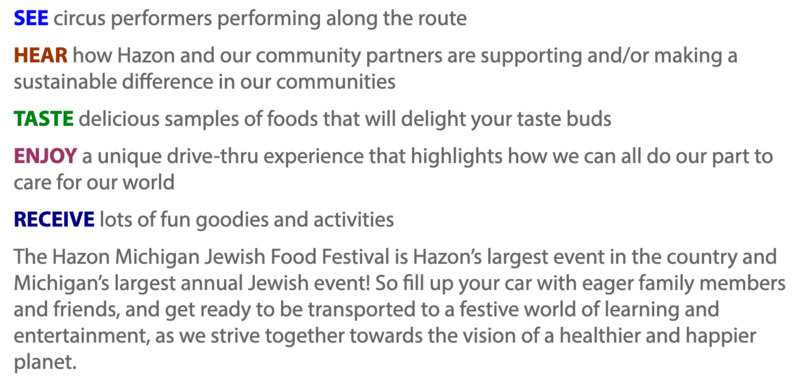 The Hazon Michigan Jewish Food Festival is Hazon’s largest event in the country and Michigan’s largest annual Jewish event! So fill up your car with eager family members and friends, and get ready to be transported to a festive world of learning and entertainment, as we strive together towards the vision of a healthier and happier planet.