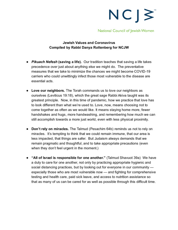 National Council of Jewish Women: Jewish Values and Coronavirus