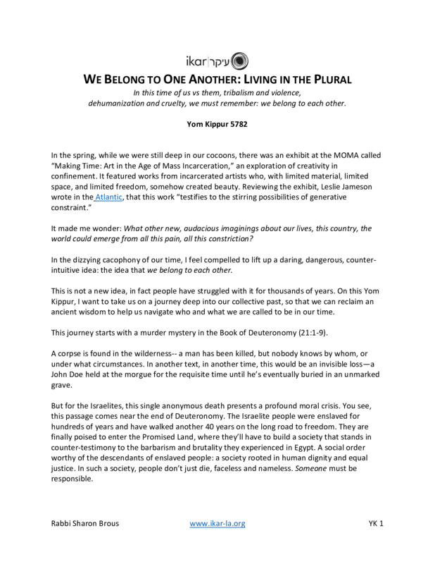 IKAR: Rabbi Sharon Brous, Living in the Plural