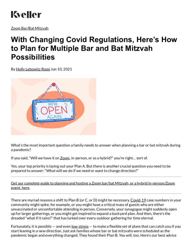 Kveller: With Changing Covid Regulations, Here's How to Plan for Mulitple Bar and Bat Mitzvah Possibilities