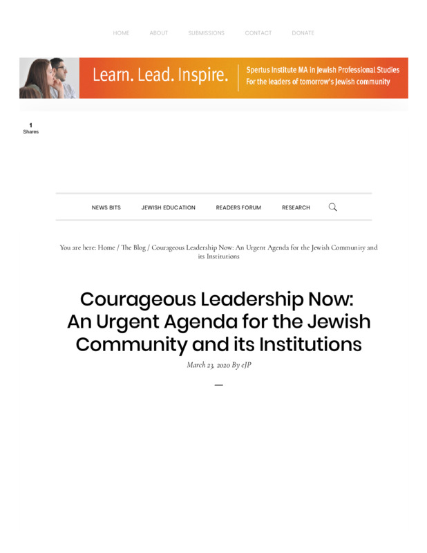 Courageous Leadership Now: An Urgent Agenda for the Jewish Community and its Institutions
