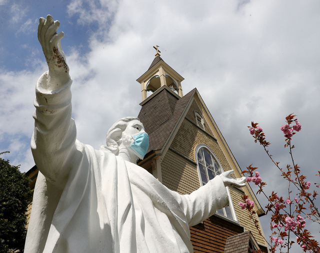 Our Lady Star of the Sea Church in Atlantic City, New Jersey, photograph of Jesus wearing protective mask. Edward Lea is staff photographer for The Press of Atlantic City.